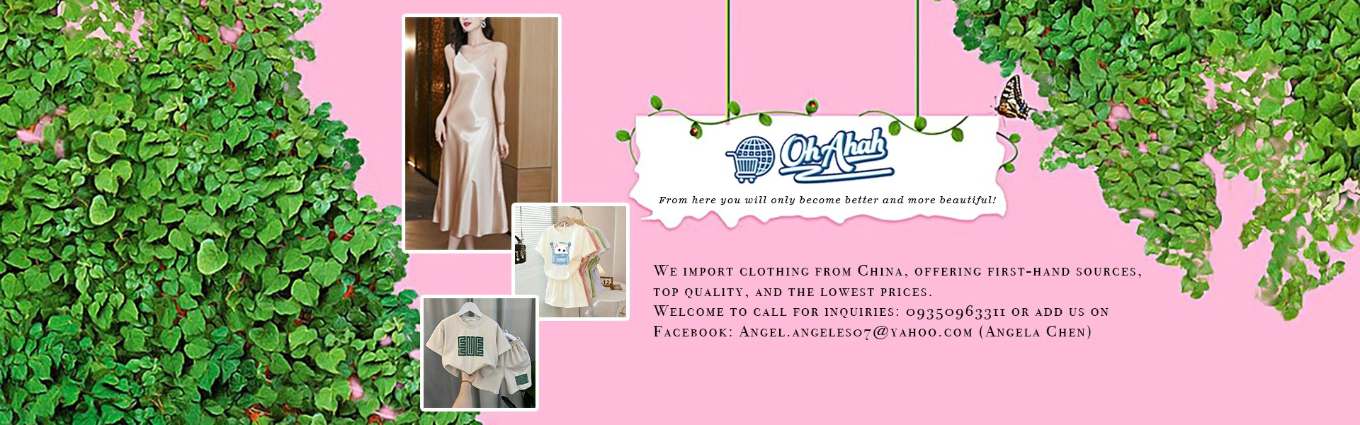 We import clothing from China, offering first-hand sources, top quality, and the lowest prices. Welcome to call for inquiries: 09350963311 or add us on Facebook: Angel.angeles07@yahoo.com (Angela Chen)